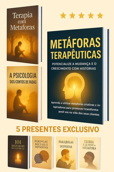 Ao adquirir Metáforas Terapêutica hoje, recebera totalmente GRATIS estes 5 bônus exclusivos que complementara o seu estudo sobre Metáforas Terapêuticas: