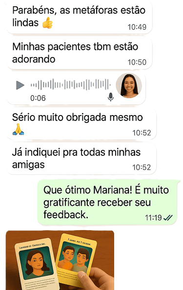 Mais de 4.000 famílias e profissionais já estão transformando suas jornadas emocionais com nossas metáforas terapêuticas.