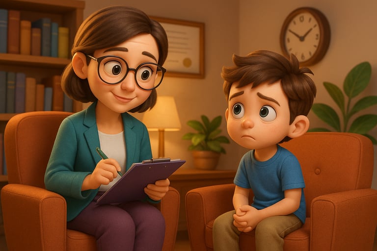 Histórias ilustradas facilitam que a criança se reconheça na situação, tornando o processo terapêutico mais leve e acolhedor.